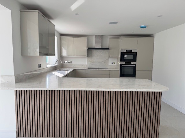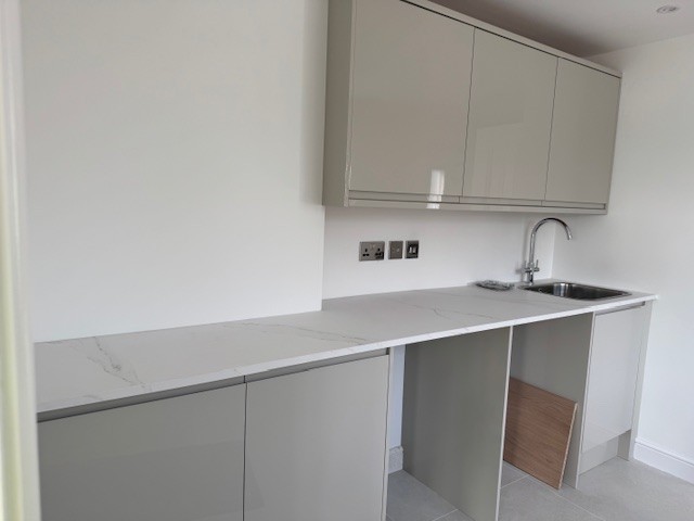 Work on Plots 7 and 8 is progressing well, with the kitchens now selected and successfully installed. These beautiful kitchen units are the Clark Gloss Sandstone range, chosen for their contemporary style and clean, elegant finish.